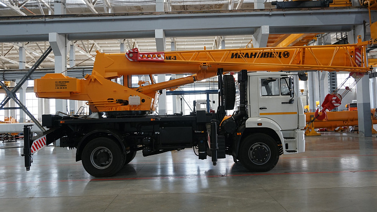 Truck-mounted crane KС-35714K-3 is designed for construction-assembly works and handling operations with regular loads.