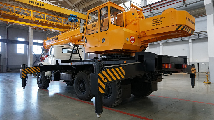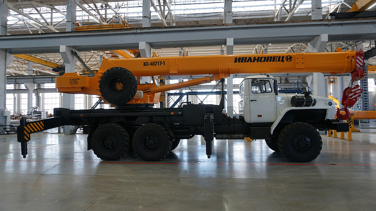 Truck-mounted crane KC-45717-1 is designed for construction-assembly works and handling operations with regular loads, as well as toxic and explosive at the distributed objects.