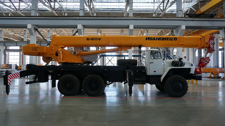 Truck-mounted crane KС-45717-1P is designed for construction-assembly works and handling operations with regular loads