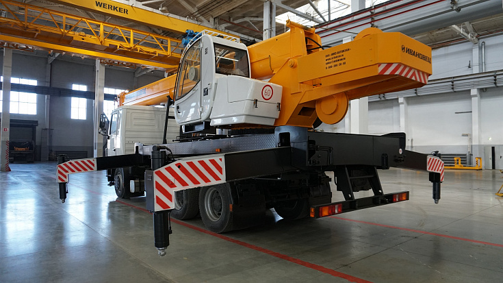 Truck-mounted crane KС-45717A-1P is designed for construction-assembly works and handling operations with regular loads at the distributed objects.