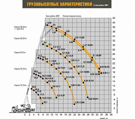 - Boom: 3 sections telescopic. Boom telescoping is performed with hydraulic cylinder and block-and-tackle system. In order to increase a length of the boom the 9.0m jib to be equipped