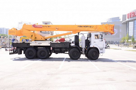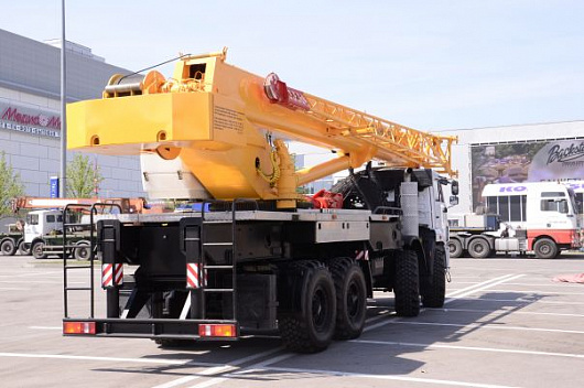 Truck-mounted crane KС-55735-7 is designed for construction-assembly works and handling operations with regular loads at the distributed objects.