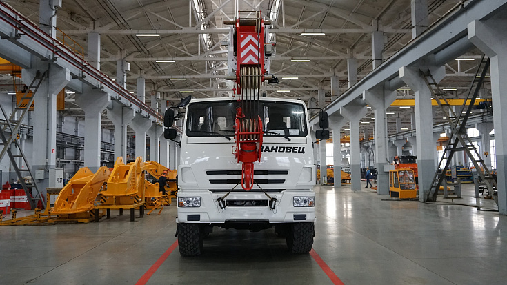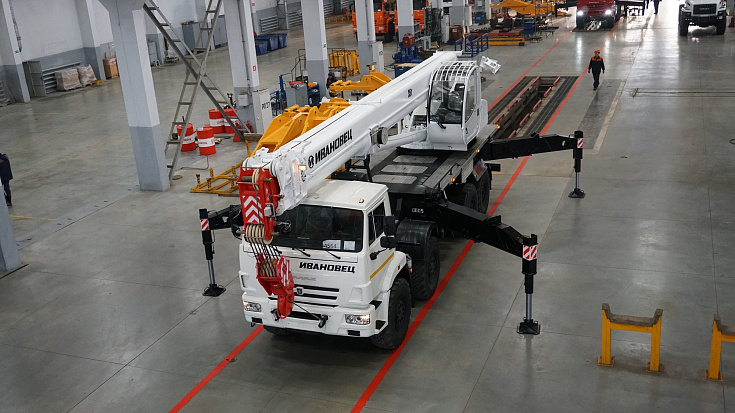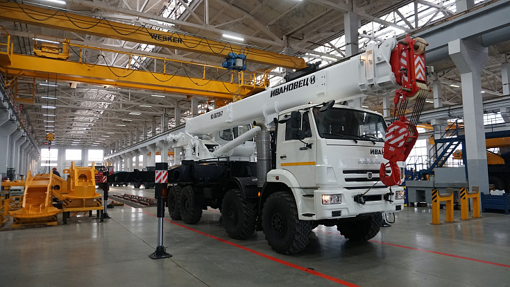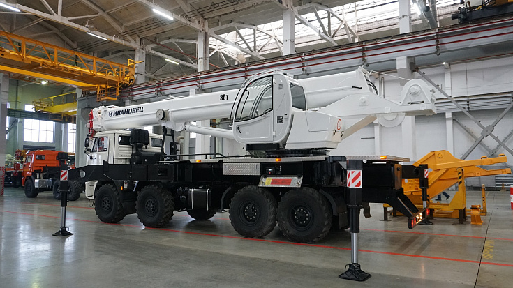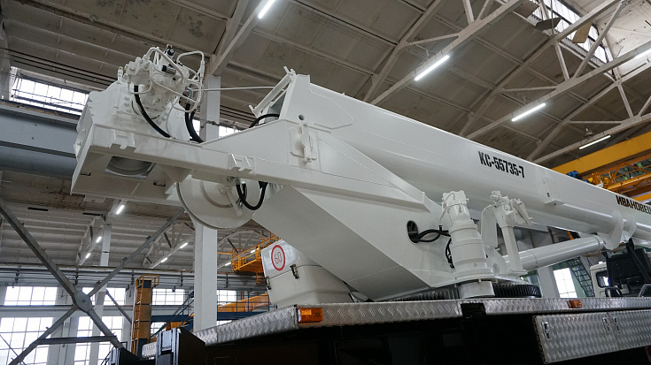 Truck-mounted crane KС-55735-7 is designed for construction-assembly works and handling operations with regular loads at the distributed objects.