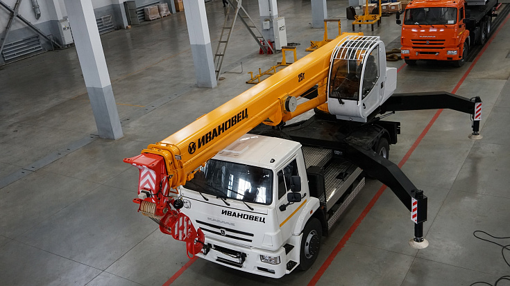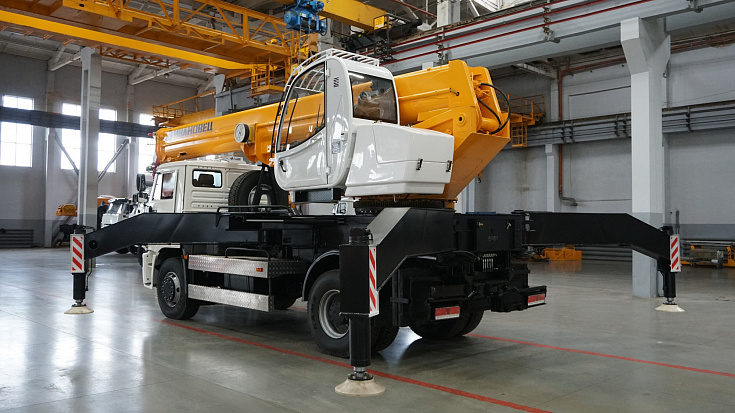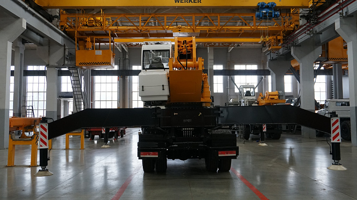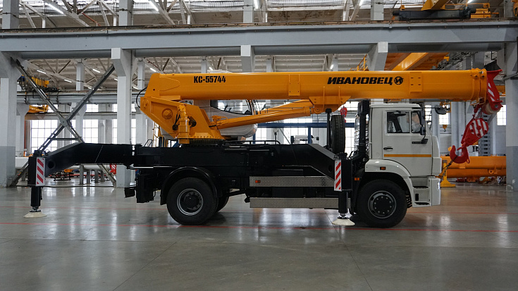 Truck-mounted crane KС-55744 is designed for construction-assembly works and handling operations with regular loads at the distributed objects