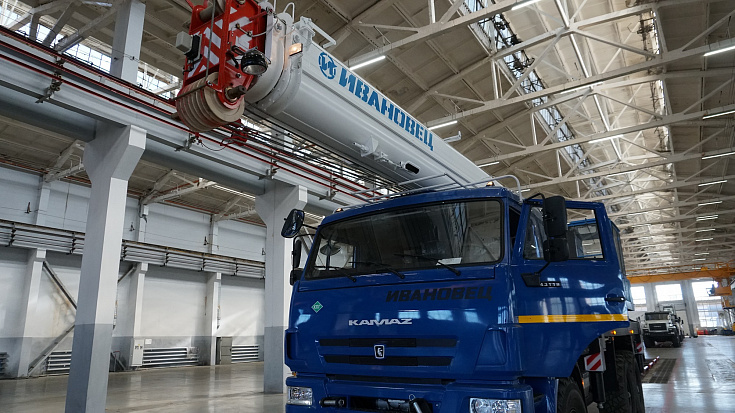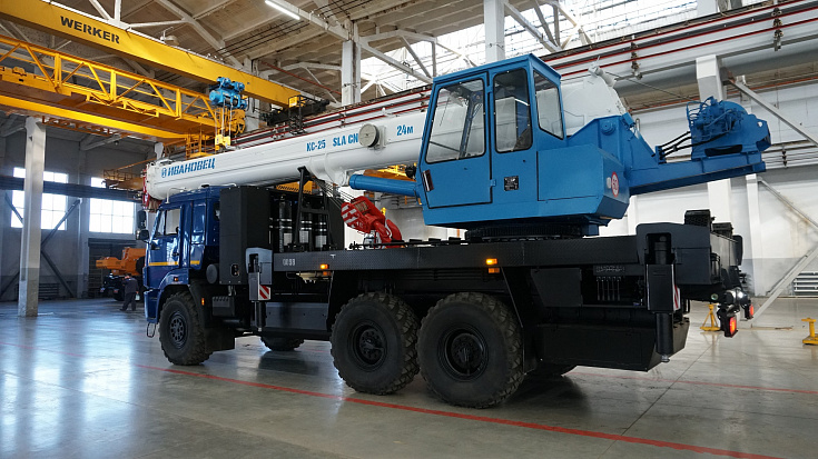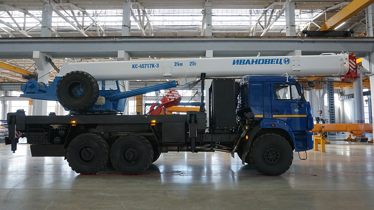 The design of the telescopic boom of the truck crane KС-45717K-3-58 is made on a completely automatic production line on technology of the present ovoide. Semi-ambush of the boom is formed by only 2 WPB with the formation of full radius sections, due to which the boom has a great resistance to loss of local stability, provides high reliability and better working conditions of mating side bearers.